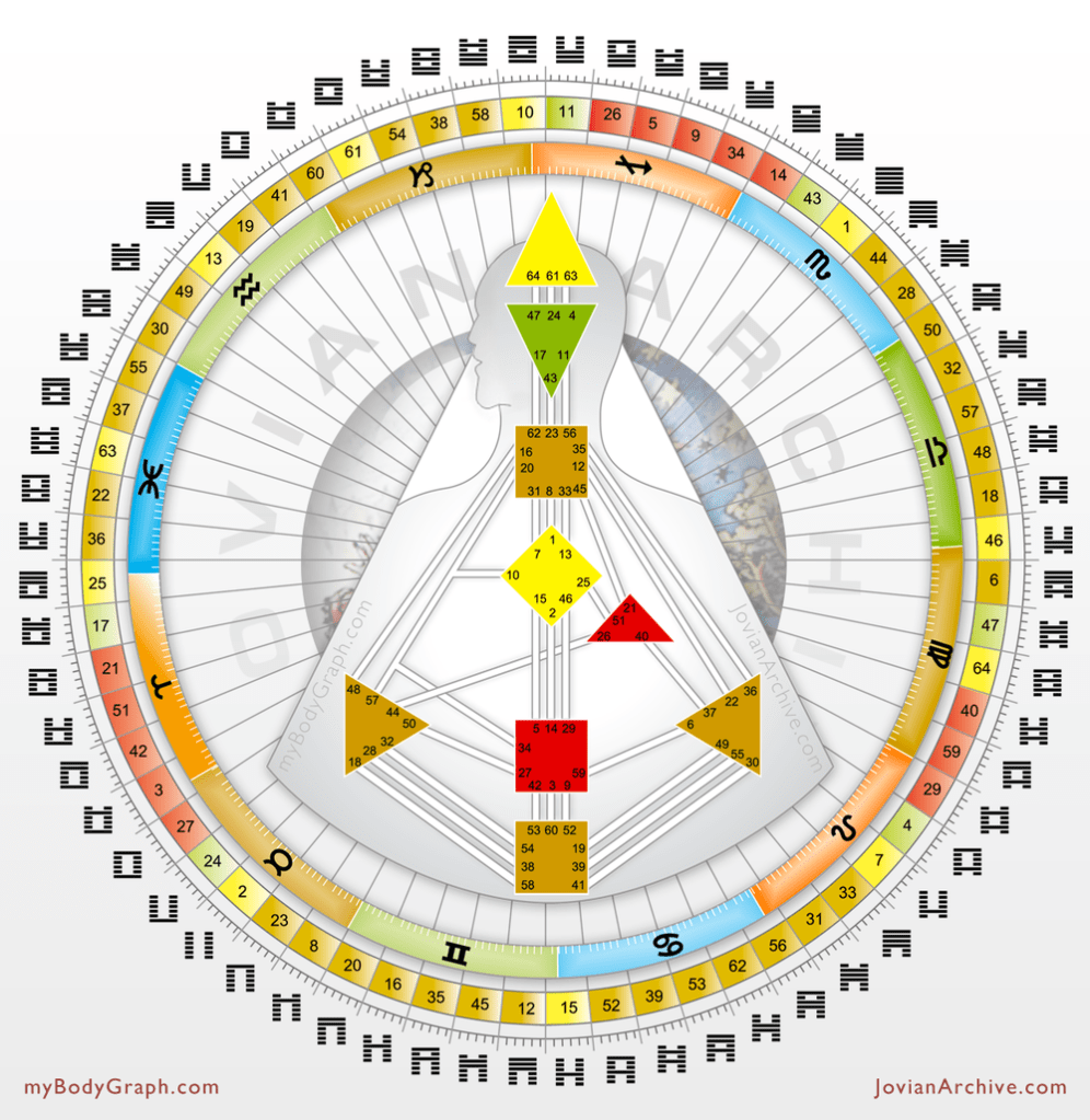 El mandala de Diseño Humano nos permite trabajar con los temas que trae el tránsito solar de cada día. El año de Diseño Humano comienza cuando el Sol pasa por la puerta 41. El avance del Sol por el mandala se produce en el sentido contrario a las agujas del reloj.